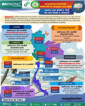 วันที่ 4 กันยายน 2568 กรมอุตุนิยมวิทยา พยากรณ์อากาศ 24 ชั่วโมงข้างหน้า ประเทศไทยยังคงมีฝนตกหนักบางแห่ง โดยมีฝนตกหนักบริเวณภาคตะวันออก ขอให้ประชาชนโดยเฉพาะบริเวณจังหวัดนครนายก จันทบุรี และตราด ระวังอันตรายจากฝนตกหนักและฝนที่ตกสะสม ซึ่งอาจทำให้เกิดน้ำท่วมฉับพลันและน้ำป่าไหลหลาก โดยเฉพาะพื้นที่ลาดเชิงเขาใกล้ทางน้ำไหลผ่าน และพื้นที่ลุ่ม เนื่องจากร่องมรสุมพาดผ่านภาคเหนือตอนล่าง ภาคกลางตอนบน และภาคตะวันออกเฉียงเหนือ ประกอบกับมรสุมตะวันตกเฉียงใต้กำลังปานกลางพัดปกคลุมทะเลอันดามัน ประเทศไทย และอ่าวไทย