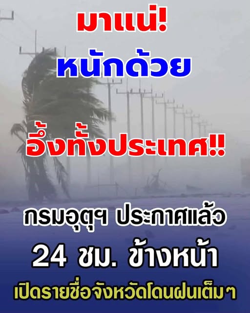 กรมอุตุฯ ประกาศแล้ว 24 ชม. ข้างหน้า เปิดรายชื่อจังหวัดโดนฝนเต็มๆ